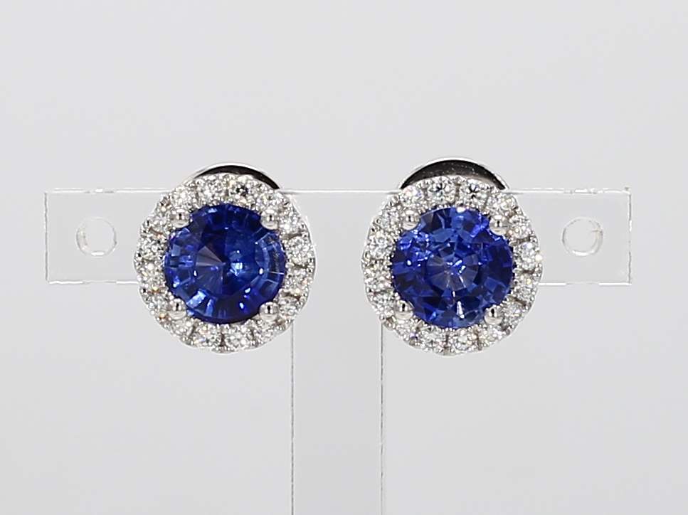 ROUND SAPPHIRE & ROUND DIAMOND 14KW EARRING