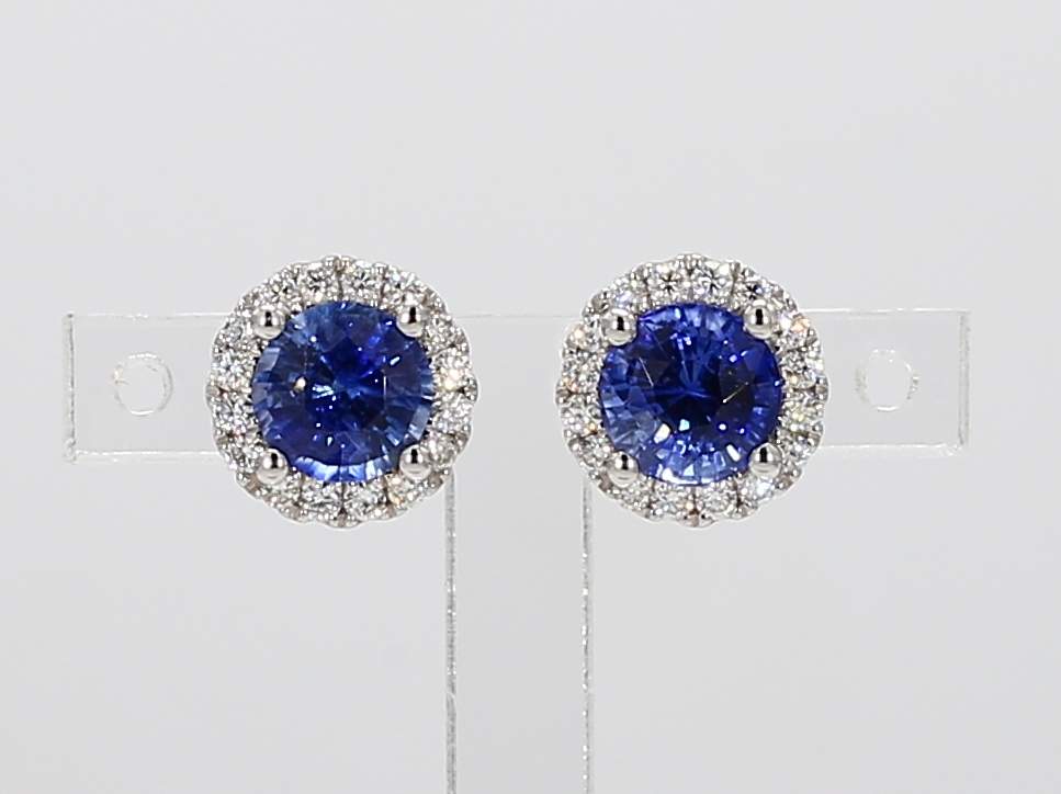 ROUND SAPPHIRE & ROUND DIAMOND 18KW EARRING