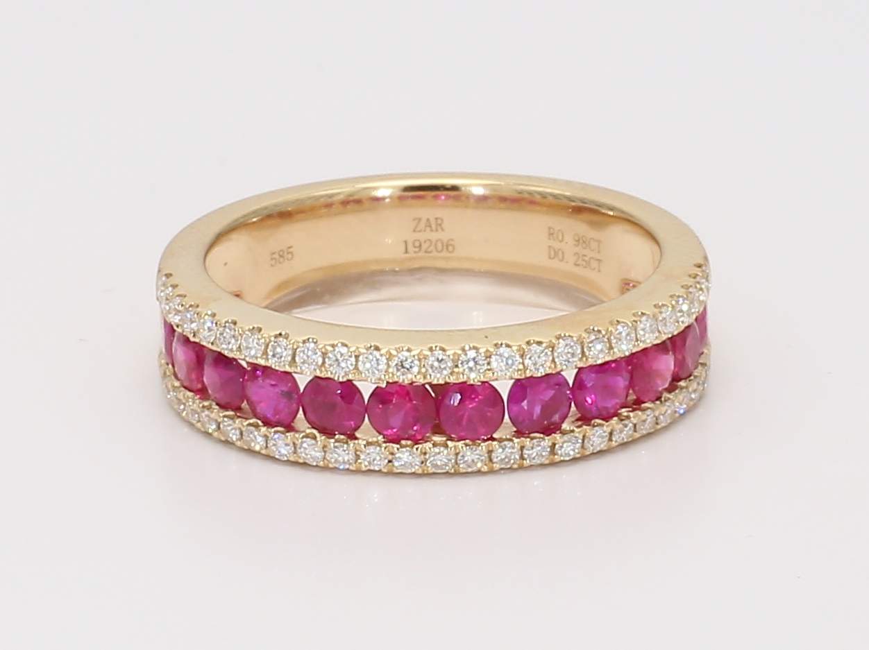 ROUND RUBY & ROUND DIAMOND 14KY BAND