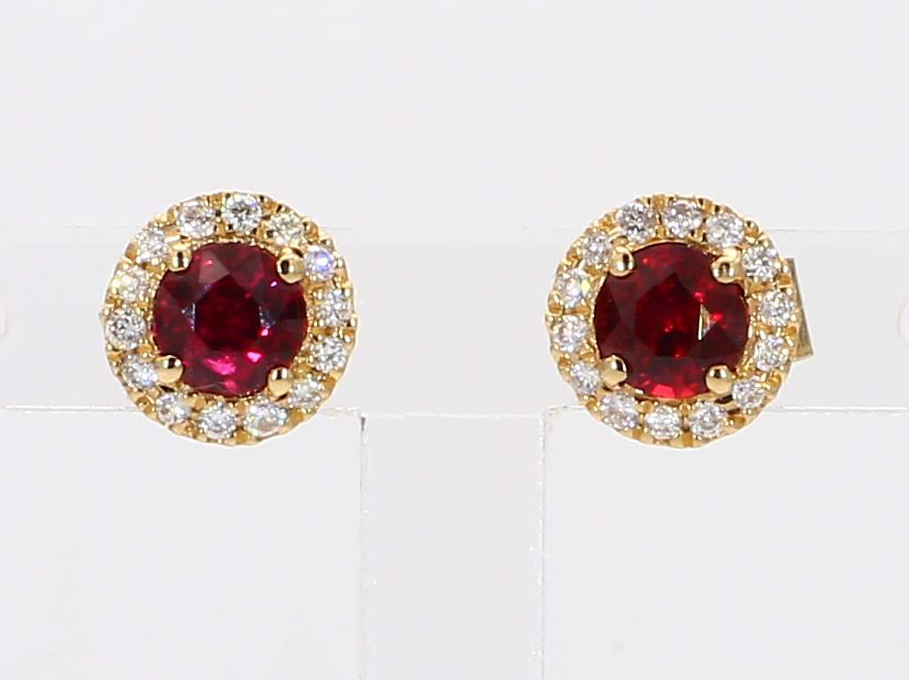 ROUND RUBY & ROUND DIAMOND 18KY EARRING
