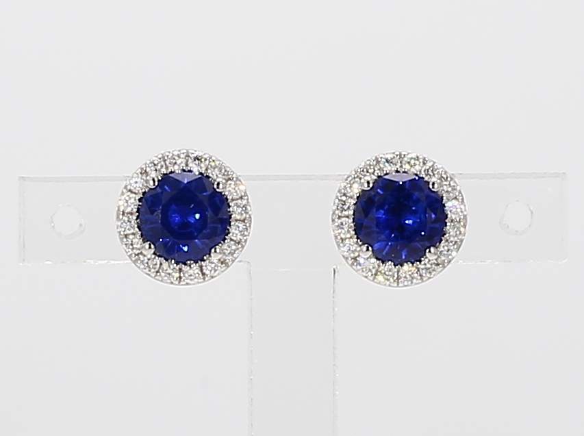ROUND SAPPHIRE & ROUND DIAMOND 14KW EARRING