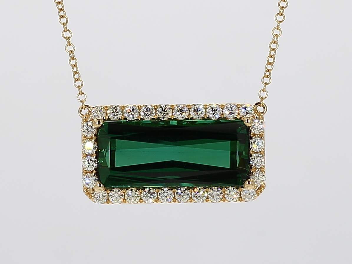 EMERALD CUT GREEN TOURMALINE & ROUND DIAMOND 14KY NECKLACE