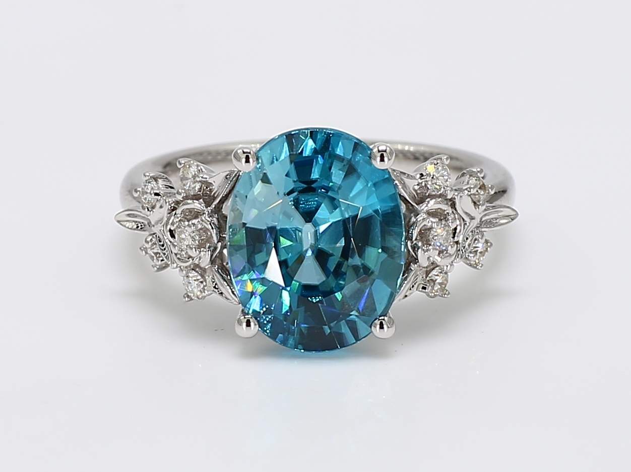 OVAL ZIRCON & ROUND DIAMOND 14KW RING