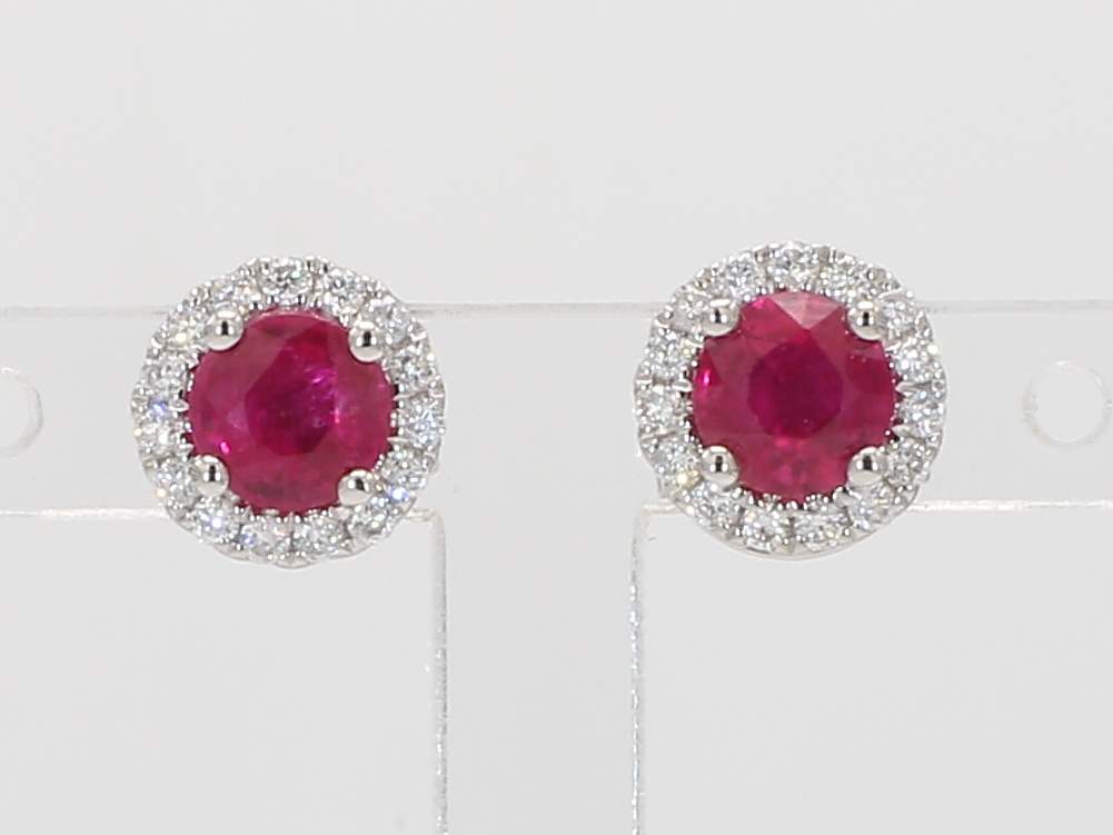 ROUND RUBY & ROUND DIAMOND 14KW EARRING