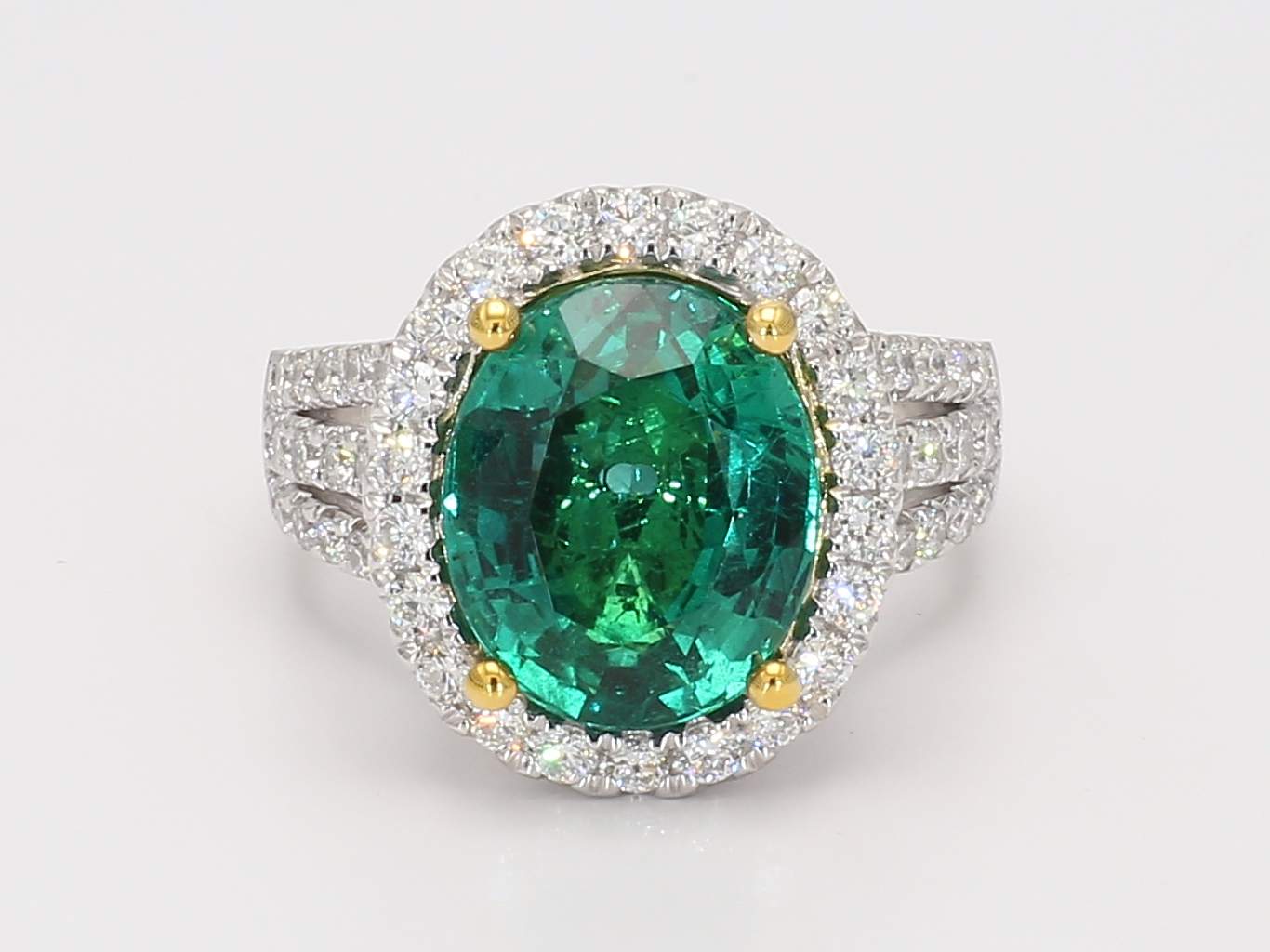 OVAL EMERALD MINOR CDC 2206134 & ROUND DIAMOND PLATINUM RING