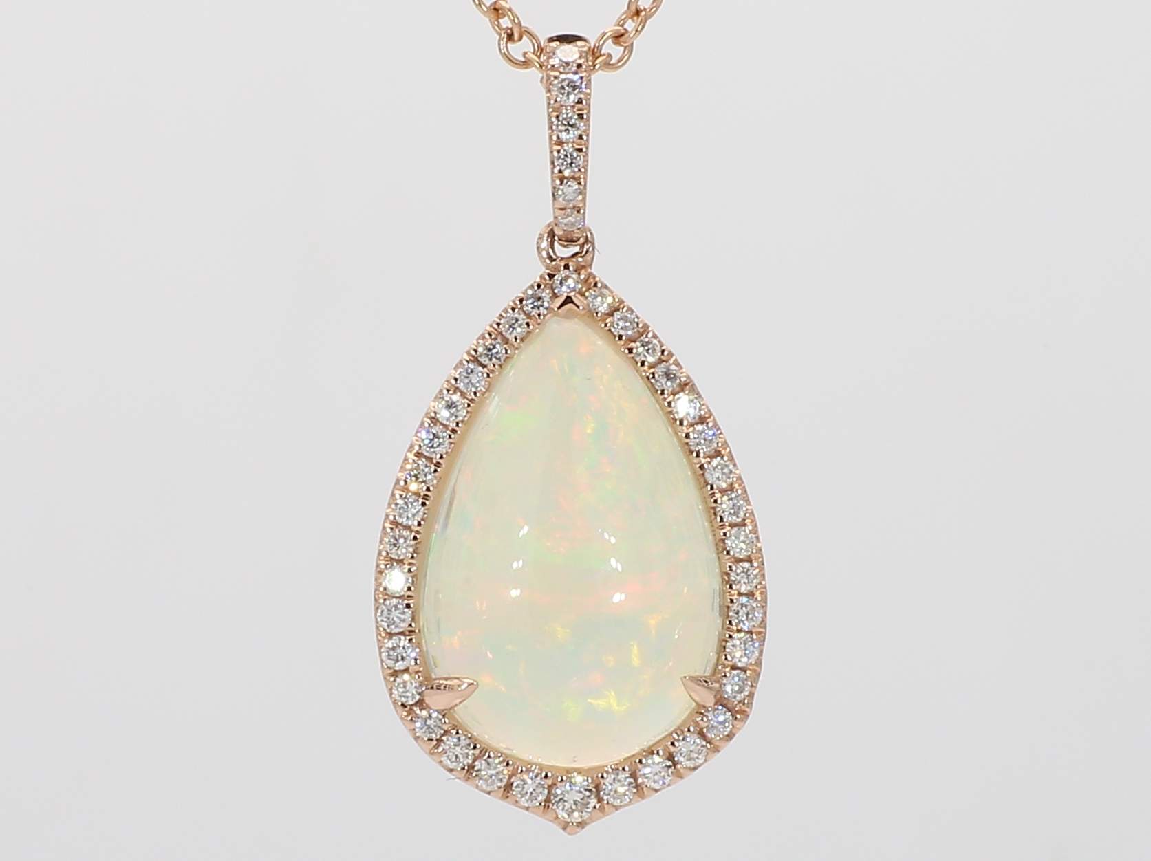PEAR SHAPE OPAL & ROUND DIAMOND 14KR PENDANT