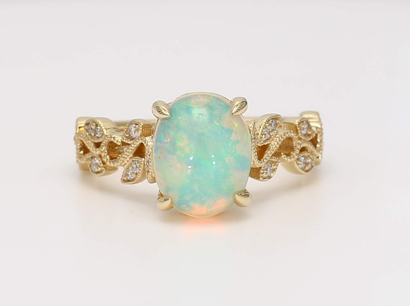 OVAL OPAL & ROUND DIAMOND 14KY RING