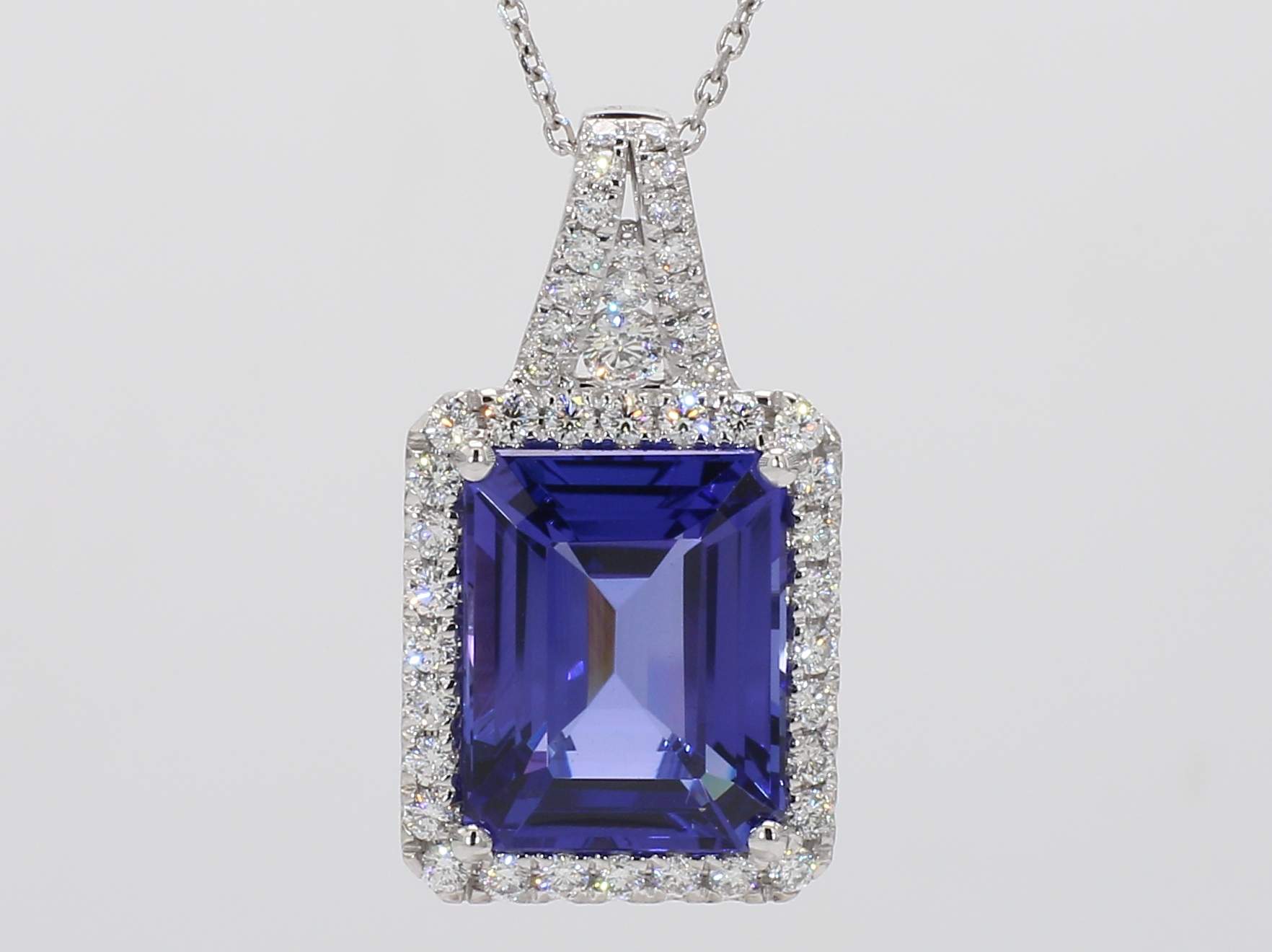 EMERALD CUT TANZANITE & ROUND DIAMOND 14KW PENDANT