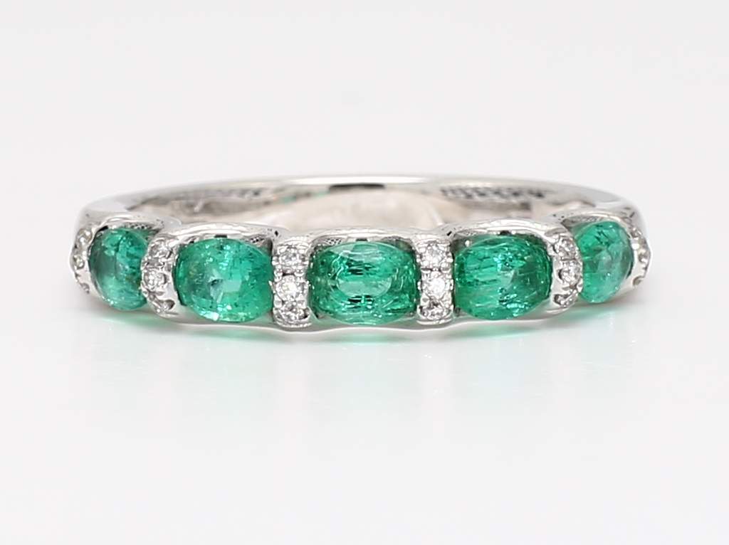 OVAL EMERALD & ROUND DIAMOND 14KW RING