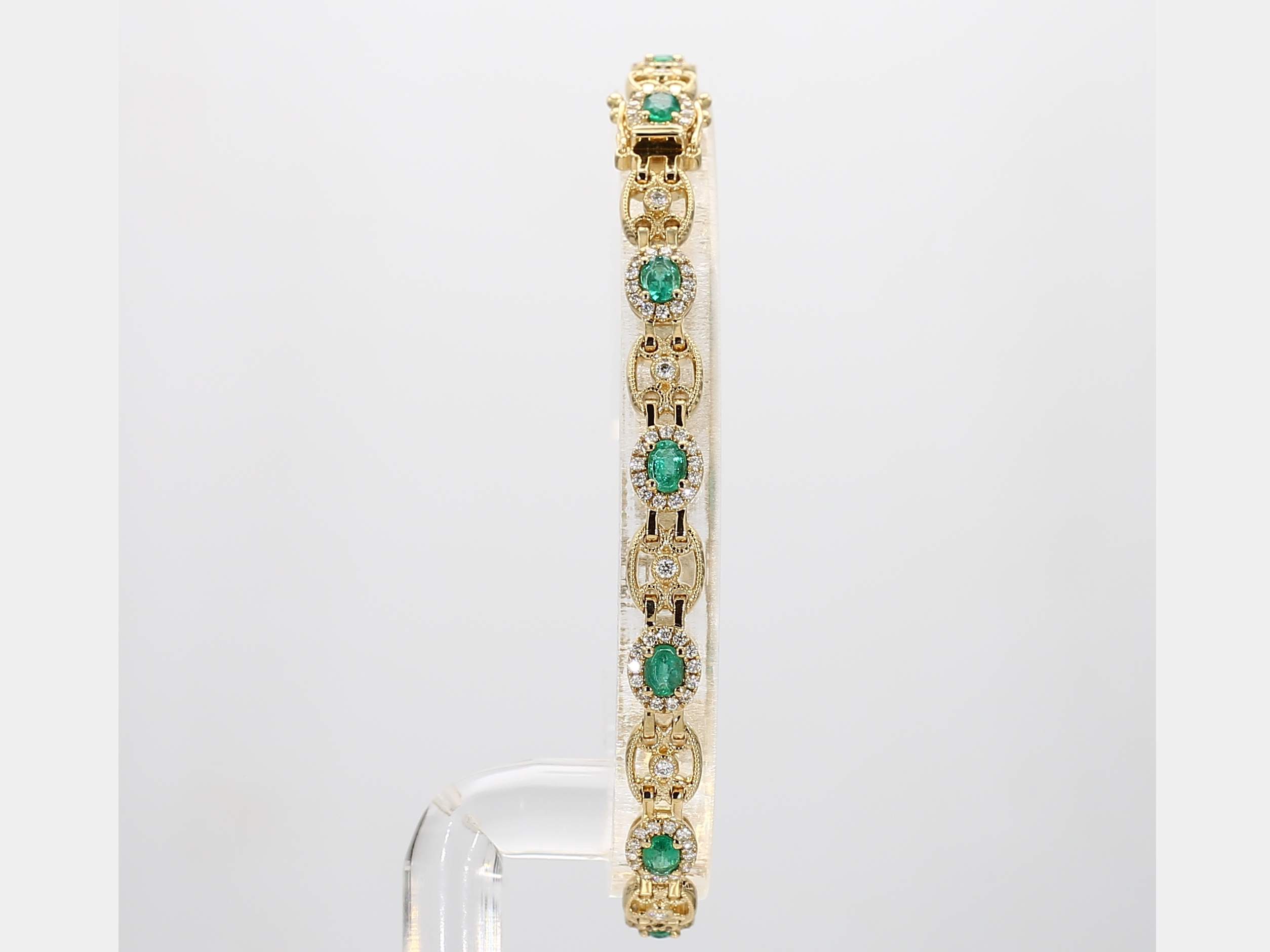 OVAL EMERALD & ROUND DIAMOND 14KY BRACELET