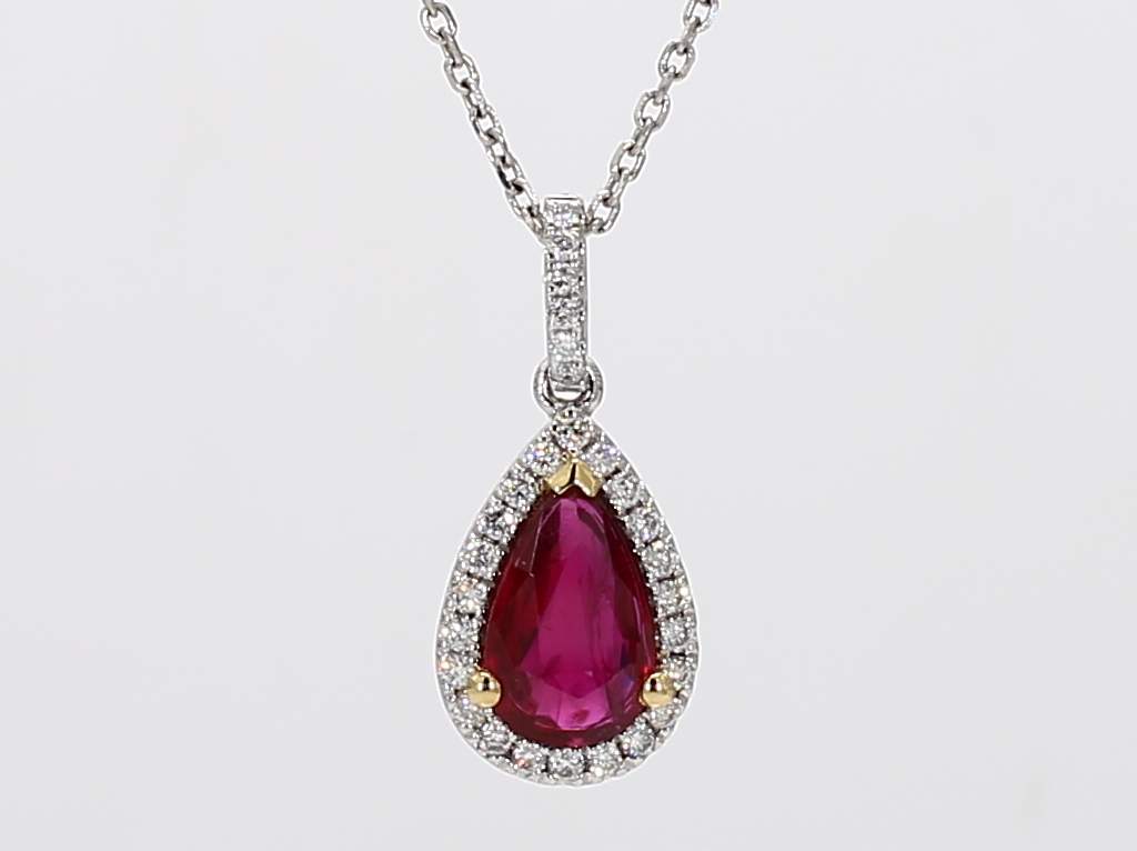 PEAR SHAPE RUBY & ROUND DIAMOND 18KW PENDANT