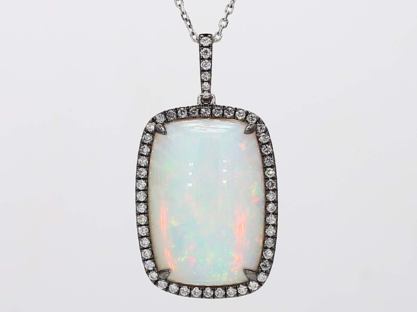 CUSHION OPAL & ROUND DIAMOND 14KW PENDANT