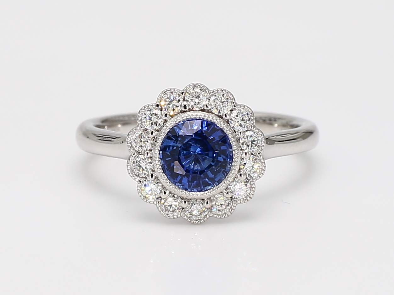 ROUND SAPPHIRE & ROUND DIAMOND 14KW RING