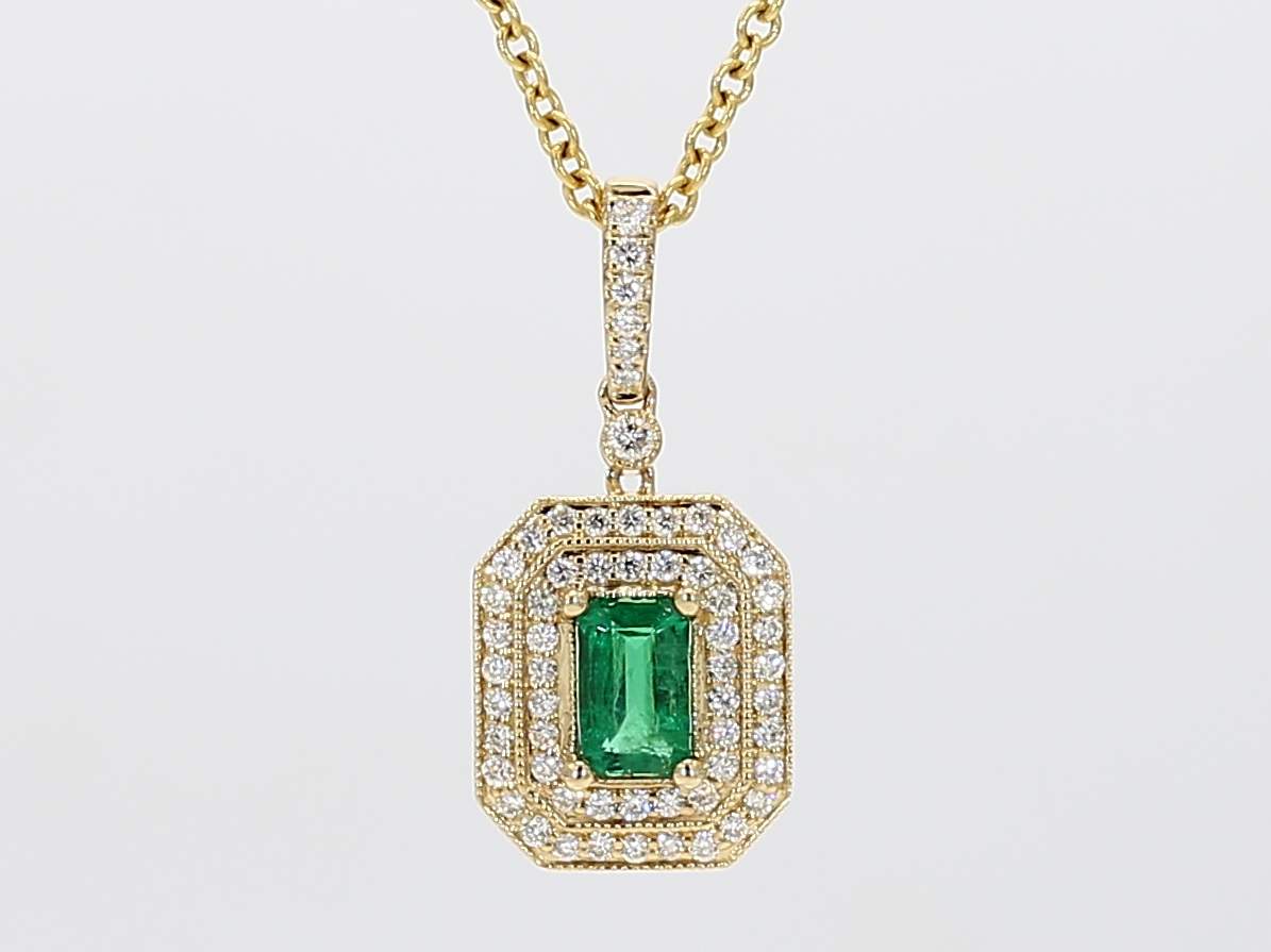 EMERALD CUT EMERALD & ROUND DIAMOND 14KY PENDANT