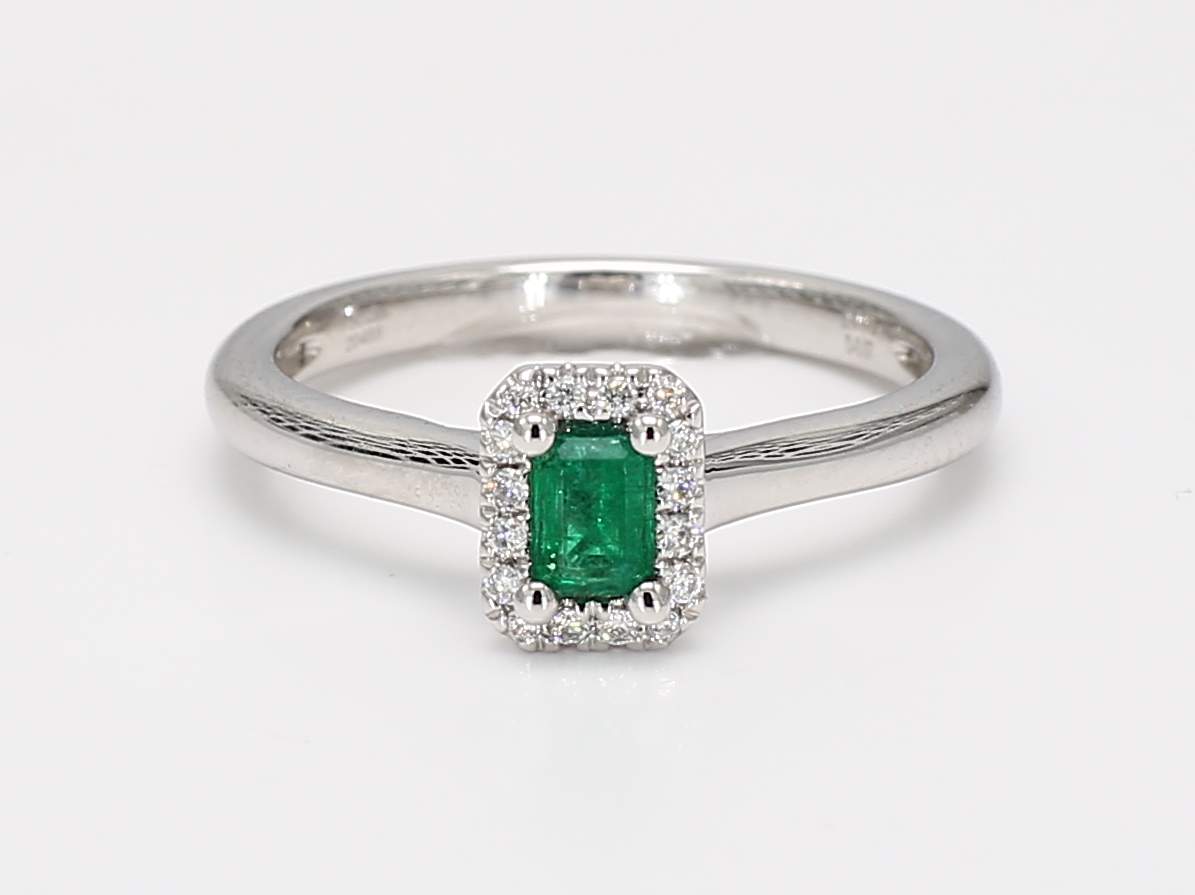 EMERALD CUT EMERALD & ROUND DIAMOND 18KW RING
