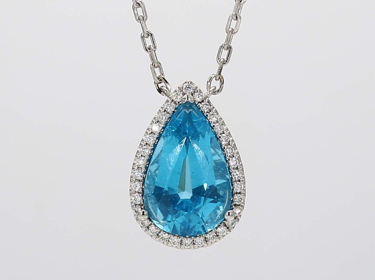 PEAR SHAPE APATITE & ROUND DIAMOND PLATINUM NECKLACE