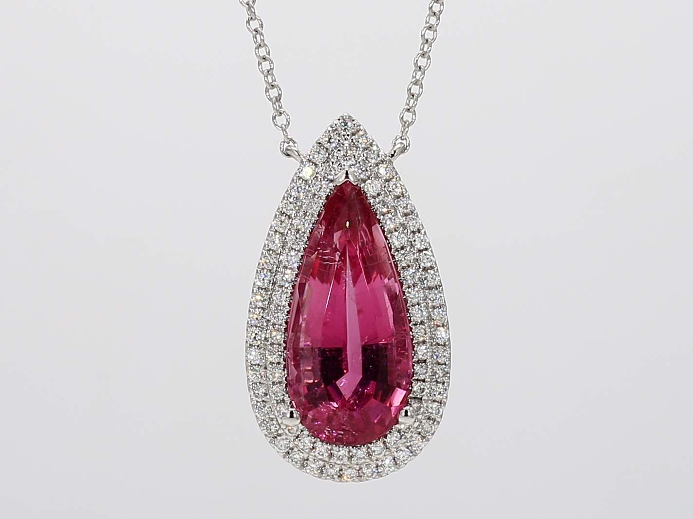 PEAR SHAPE PINK TOURMALINE & ROUND DIAMOND 14KW NECKLACE