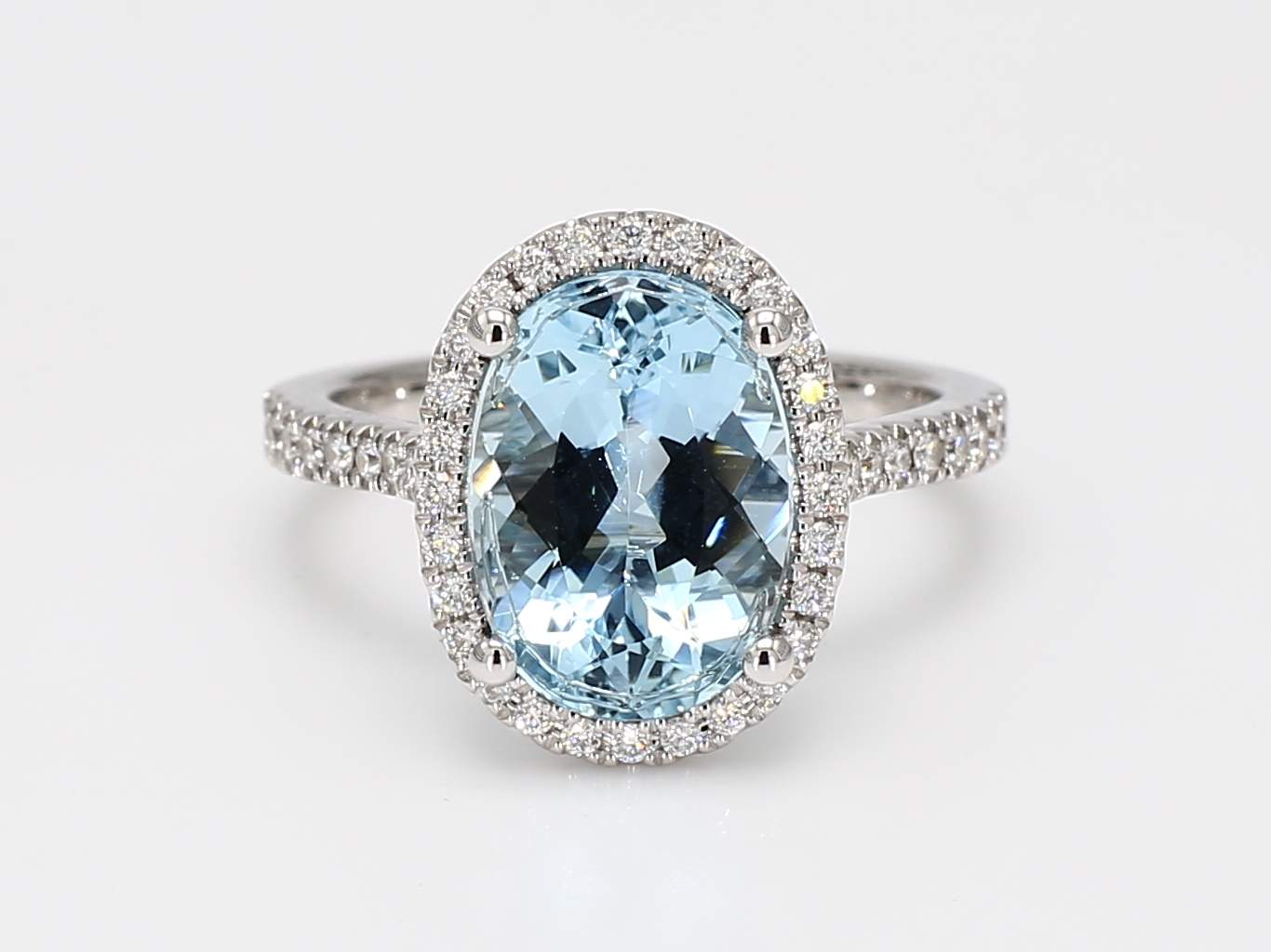 OVAL AQUAMARINE & ROUND DIAMOND 14KW RING