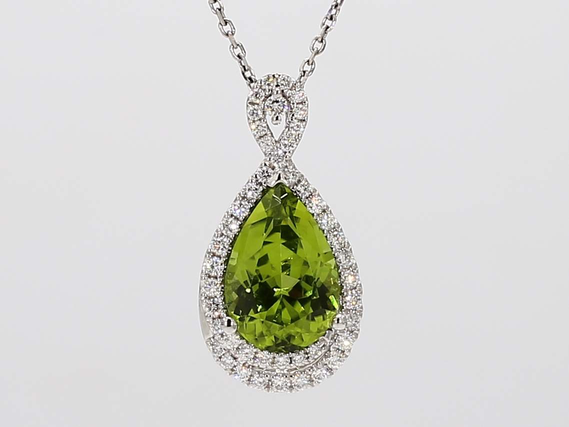 PEAR SHAPE PERIDOT & ROUND DIAMOND 14KW PENDANT