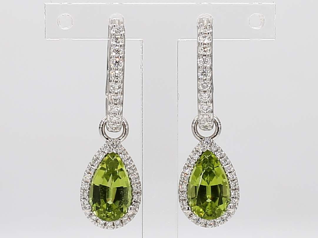 PEAR SHAPE PERIDOT & ROUND DIAMOND 14KW EARRING