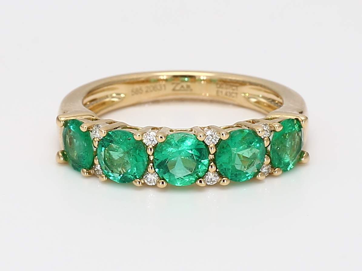 ROUND EMERALD & ROUND DIAMOND 14KY BAND
