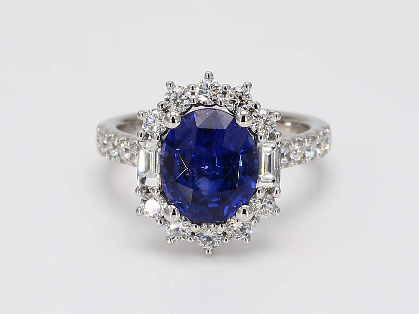 OVAL SAPPHIRE GIA 1236411373 & BAGUETTE DIAMOND & ROUND DIAMOND PLATINUM RING