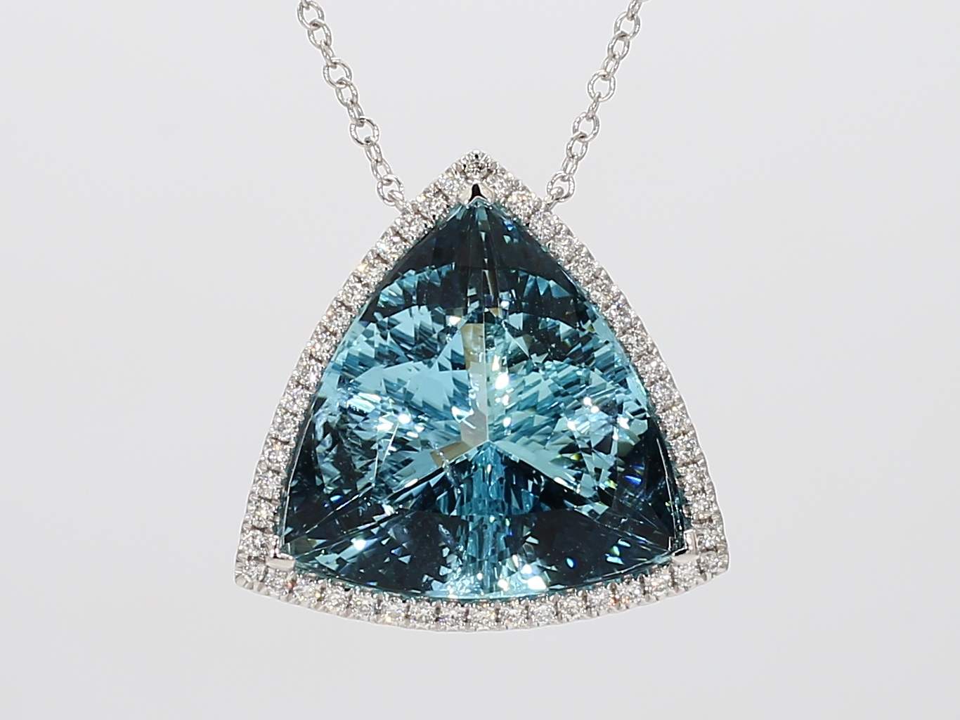 TRILLION AQUAMARINE & ROUND DIAMOND 14KW NECKLACE