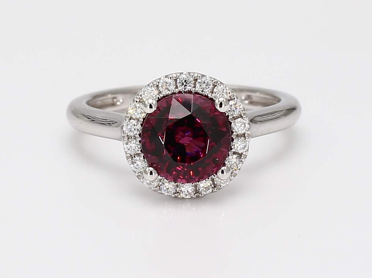 ROUND UMBALITE GARNET & ROUND DIAMOND 14KW RING