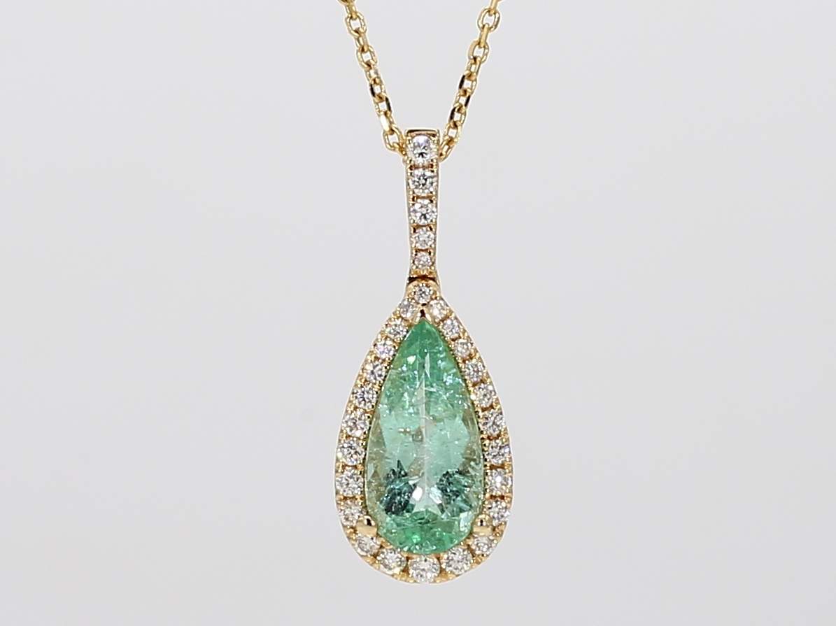 PEAR SHAPE PARAIBA TOURMALINE GIA 2235524008 & ROUND DIAMOND 14KY PENDANT