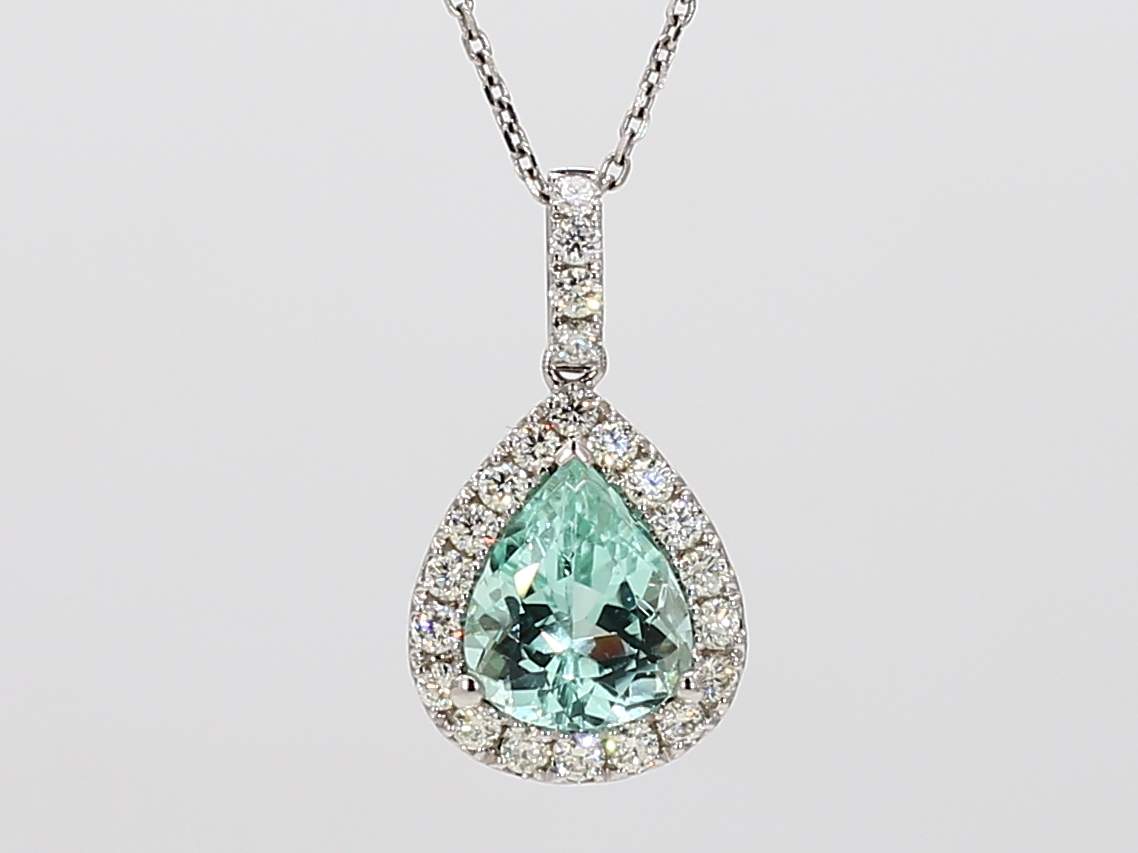 PEAR SHAPE PARAIBA TOURMALINE GIA 6233523965 & ROUND DIAMOND 18KW PENDANT