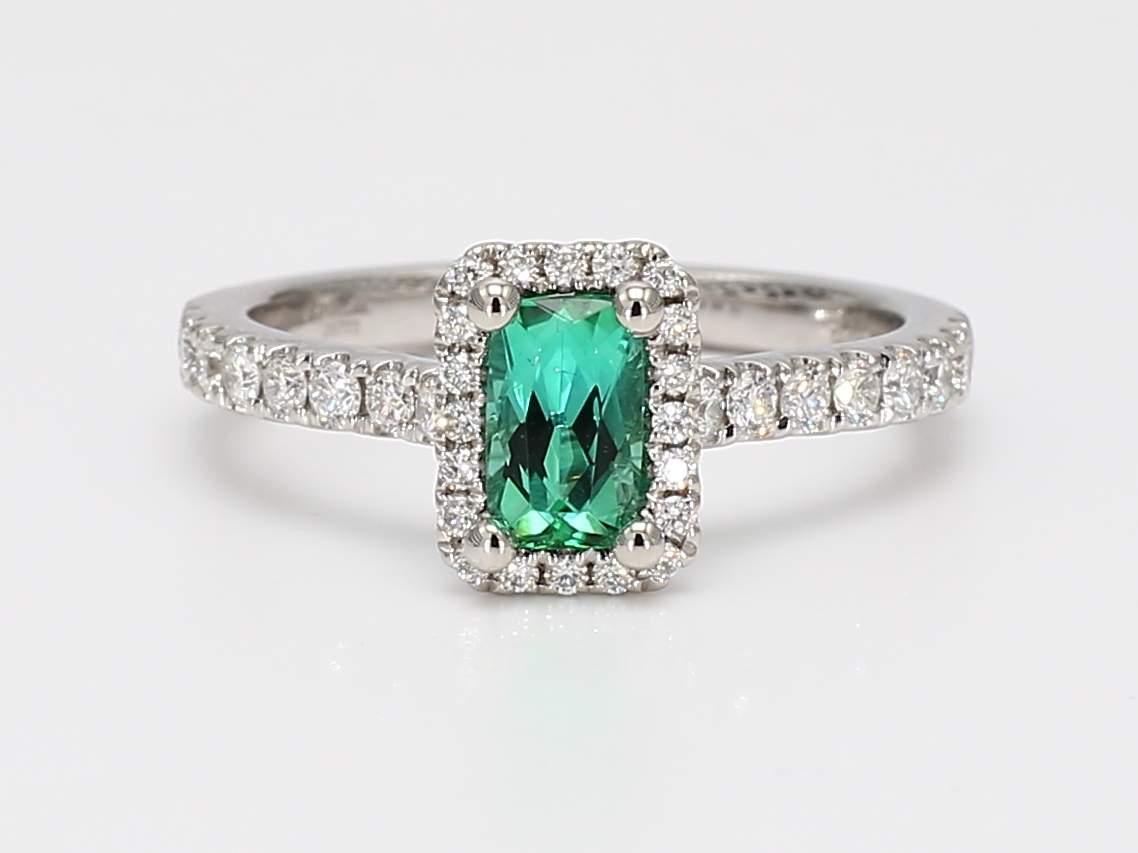 CUSHION PARAIBA TOURMALINE GIA 7235163524 BRAZIL & ROUND DIAMOND PLATINUM RING