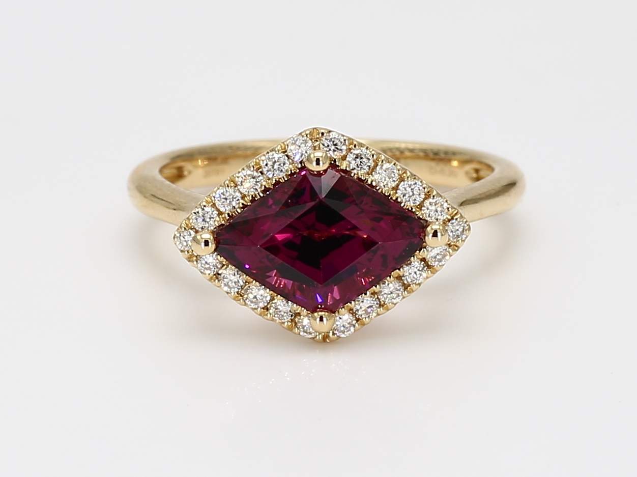 SHIELD UMBALITE GARNET & ROUND DIAMOND 14KY RING
