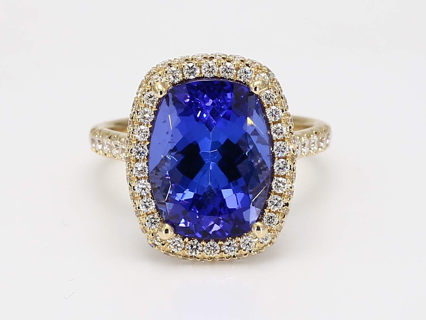 CUSHION TANZANITE & ROUND DIAMOND 14KY RING