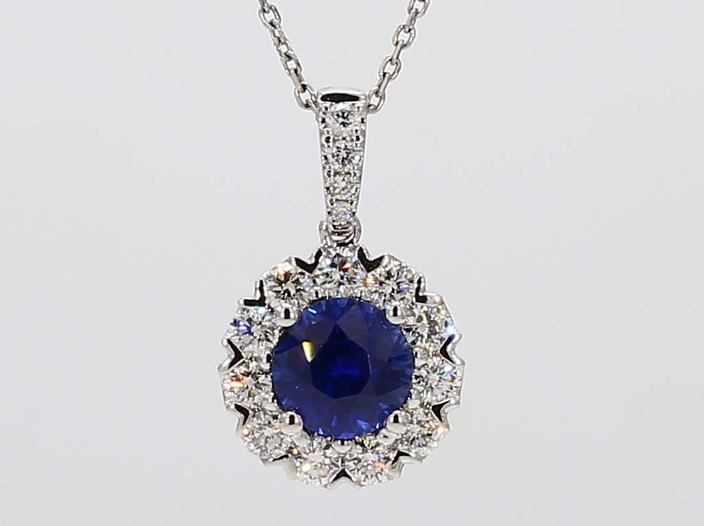 ROUND SAPPHIRE & ROUND DIAMOND 14KW PENDANT