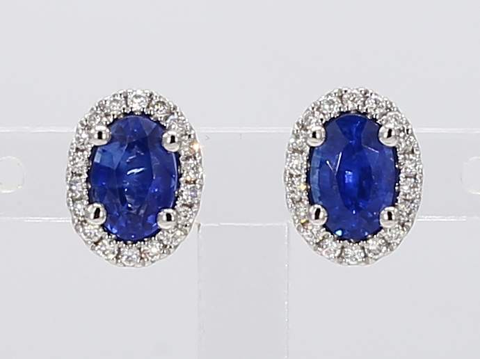 OVAL SAPPHIRE & ROUND DIAMOND 14KW EARRING