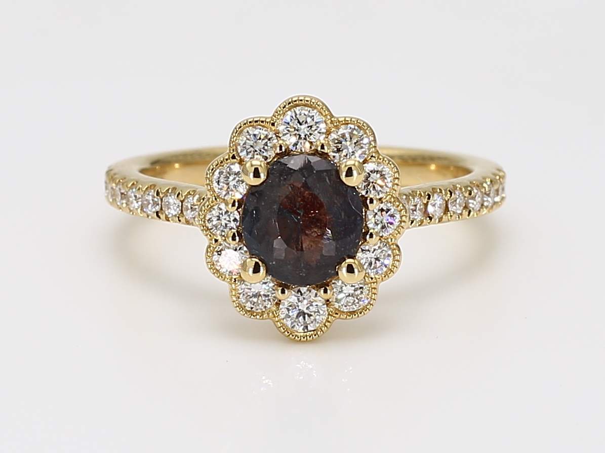 OVAL BRAZILIAN ALEXANDRITE GIA 2233523988 & ROUND DIAMOND 18KY RING