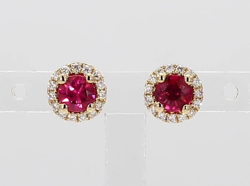 ROUND RUBY & ROUND DIAMOND 14KY EARRING