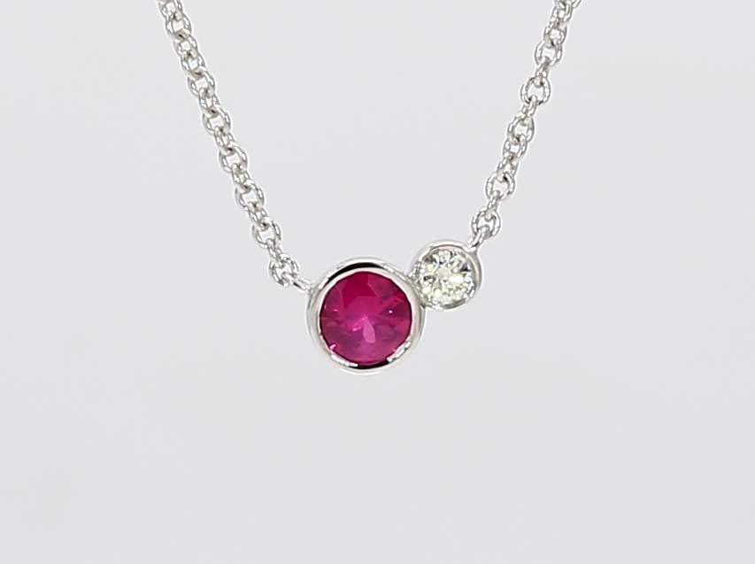 ROUND RUBY & ROUND DIAMOND 14KW NECKLACE