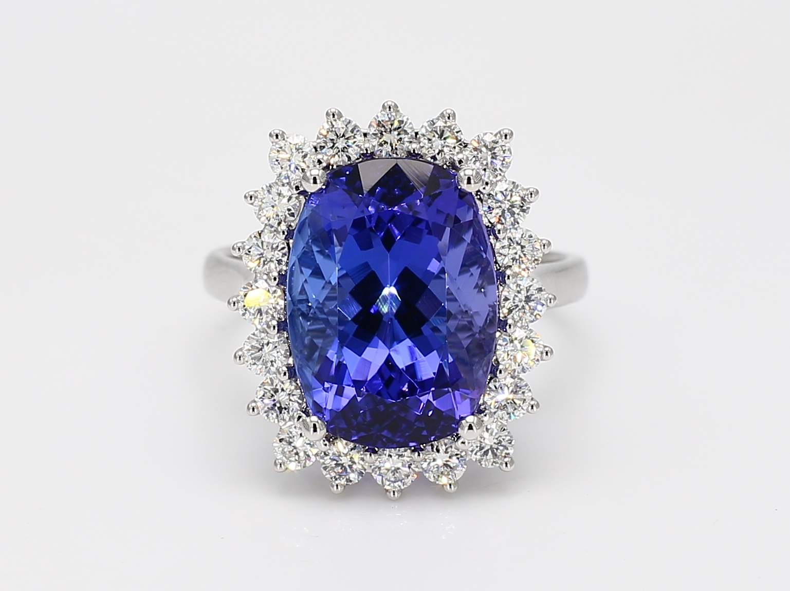 CUSHION TANZANITE & ROUND DIAMOND 14KW RING