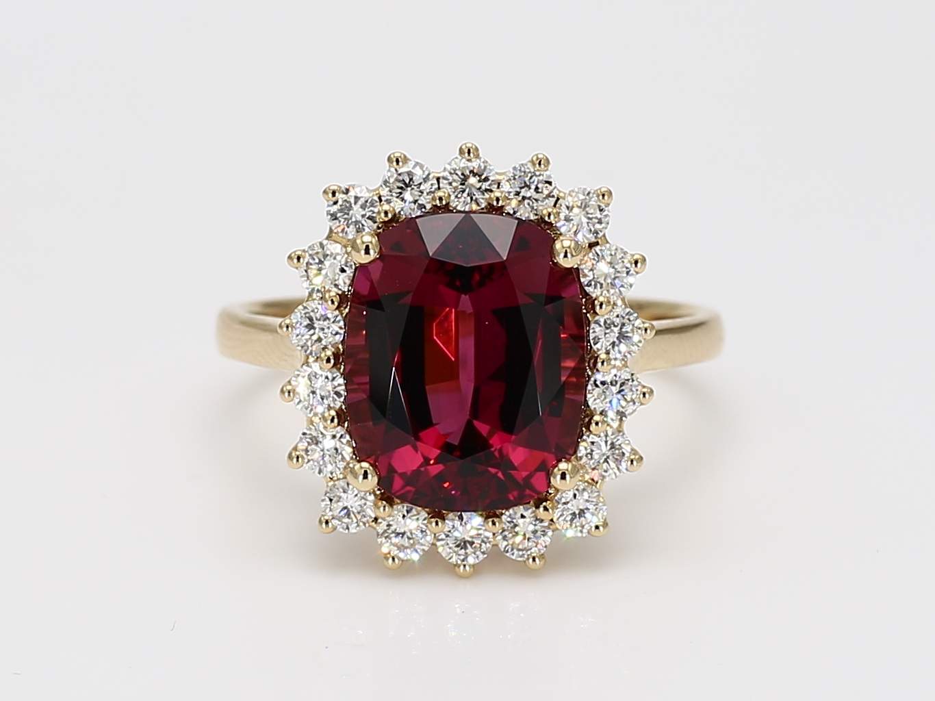 CUSHION RHODOLITE GARNET & ROUND DIAMOND 14KY RING