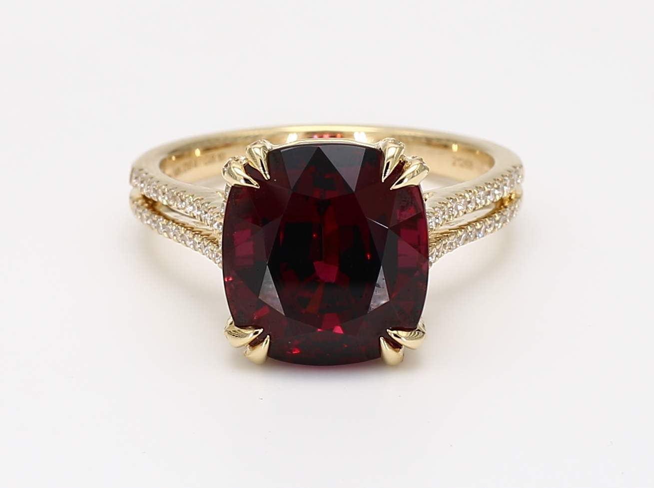 CUSHION RHODOLITE GARNET & ROUND DIAMOND 14KY RING