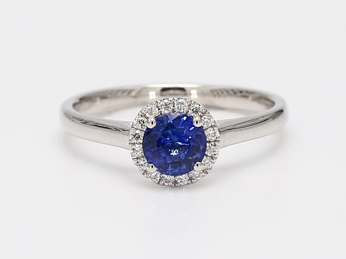 ROUND SAPPHIRE & ROUND DIAMOND 14KW RING