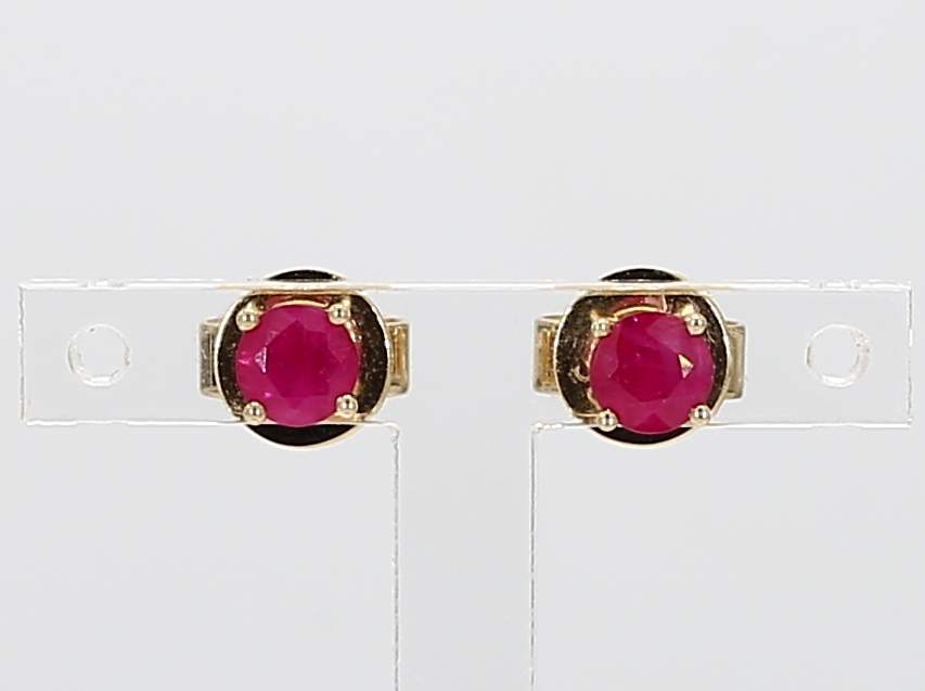 ROUND RUBY 14KY EARRING