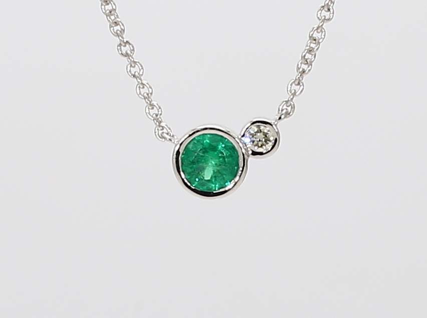 ROUND EMERALD & ROUND DIAMOND 14KW NECKLACE