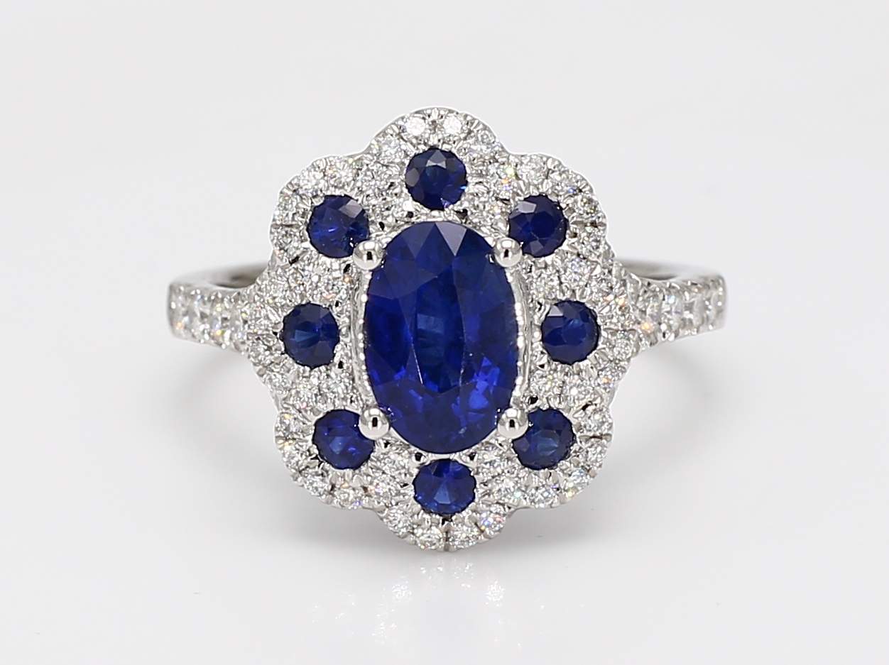 OVAL & ROUND SAPPHIRE & ROUND DIAMOND PLATINUM RING