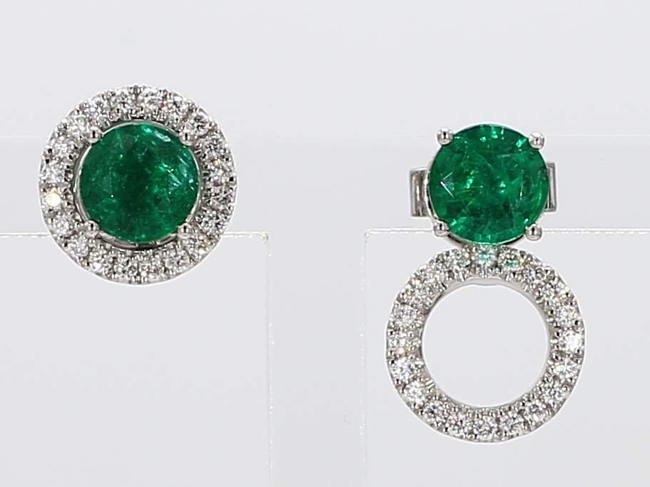 ROUND EMERALD & ROUND DIAMOND 14KW EARRING