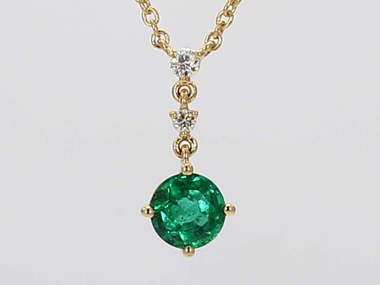 ROUND EMERALD & ROUND DIAMOND 18KY NECKLACE