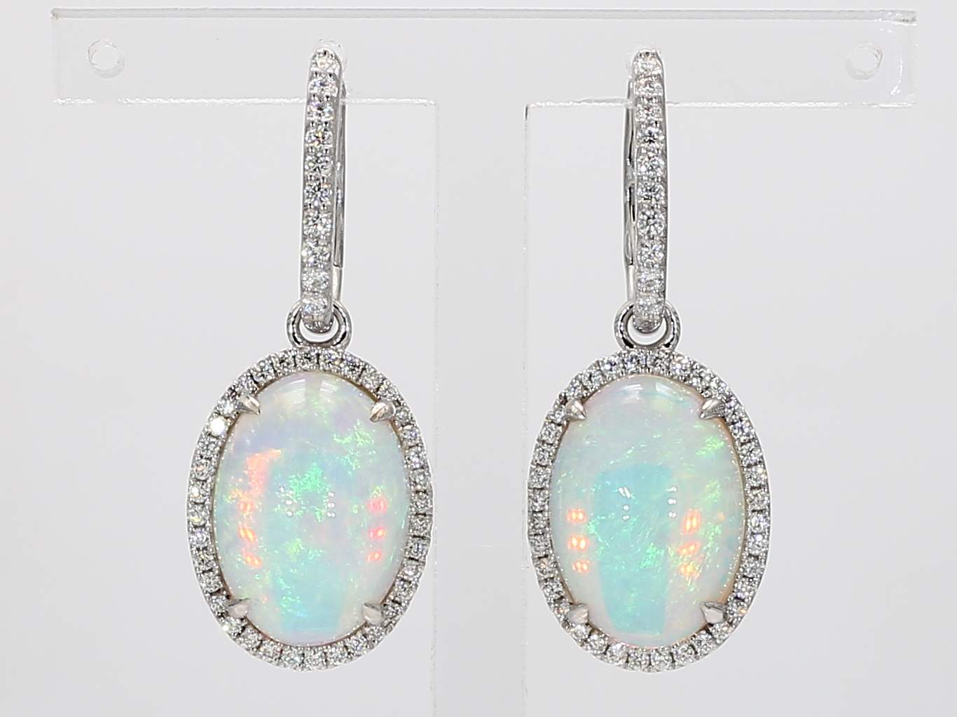 OVAL OPAL & ROUND DIAMOND 14KW EARRING