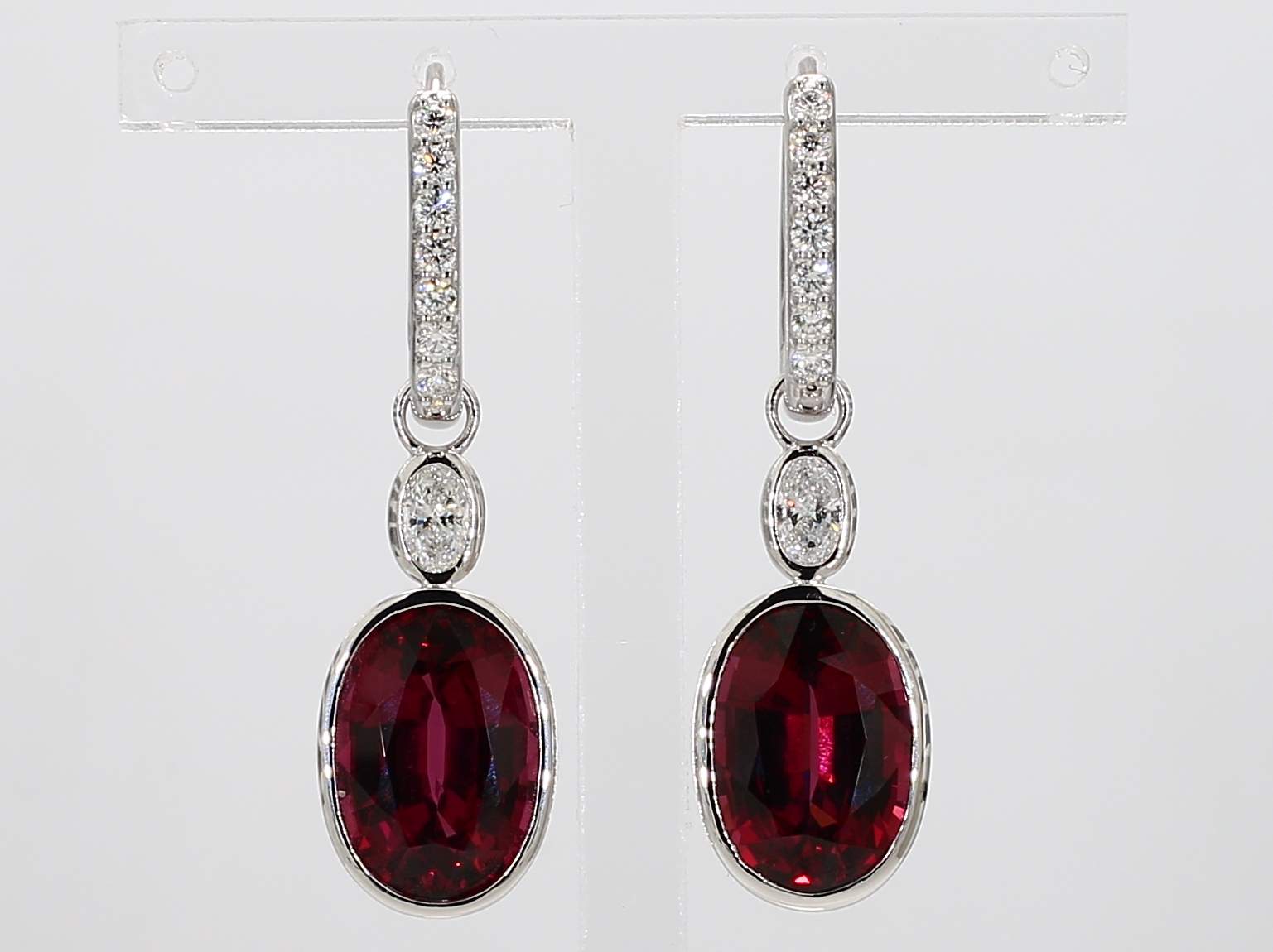 OVAL RHODOLITE GARNET & OVAL DIAMOND & ROUND DIAMOND 14KW EARRING