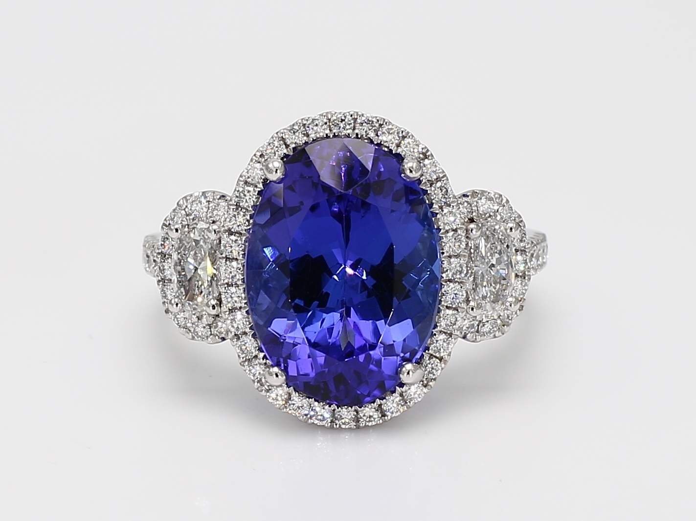 OVAL TANZANITE & OVAL & ROUND DIAMOND PLATINUM RING